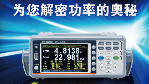 GPM-8310是一款单相(1P/2W)交流电源功率测量的数字功率计,该产品测试带宽可达DC, 0.1Hz~100kHz,采用16 bits A/D,采样率300kHz。使用5” TFT LCD显示屏、5位数测量显示、提供25种功率测量相关参数,以及高精度的测量能力。