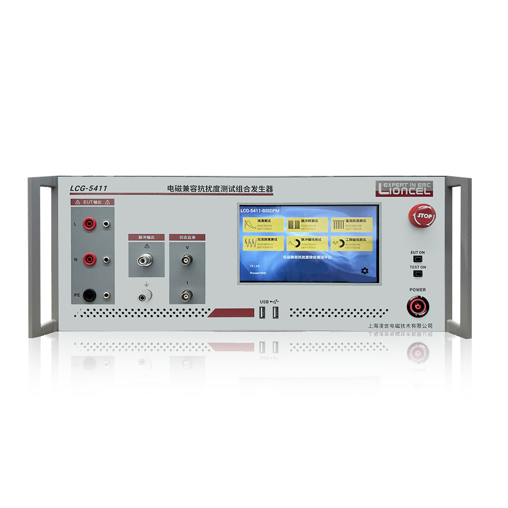 LCG-5411是凌世研制的全新智能化高集成度的多功能组合发生器,电快速瞬变脉冲群测试,雷击浪涌测试,单相交流电压跌落,直流电压跌落,脉冲磁场等多个测试项目高度集合,全彩电容触摸屏控制,内置耦合去耦网络,产品成熟,为用户电磁兼容测试提供可靠依据。