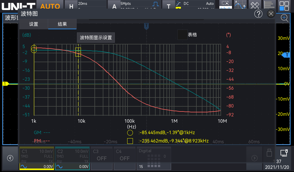 波特图功能结合优利德隔离变压器选件UT-ISOT,可以轻松绘制波特图和电源抑制比(PSRR)响应曲线,精准捕捉关键频率点的增益与相位。通过直观图形化显示,配合数据列表、光标测量和自动测量工具,深入分析频率响应变得轻而易举。