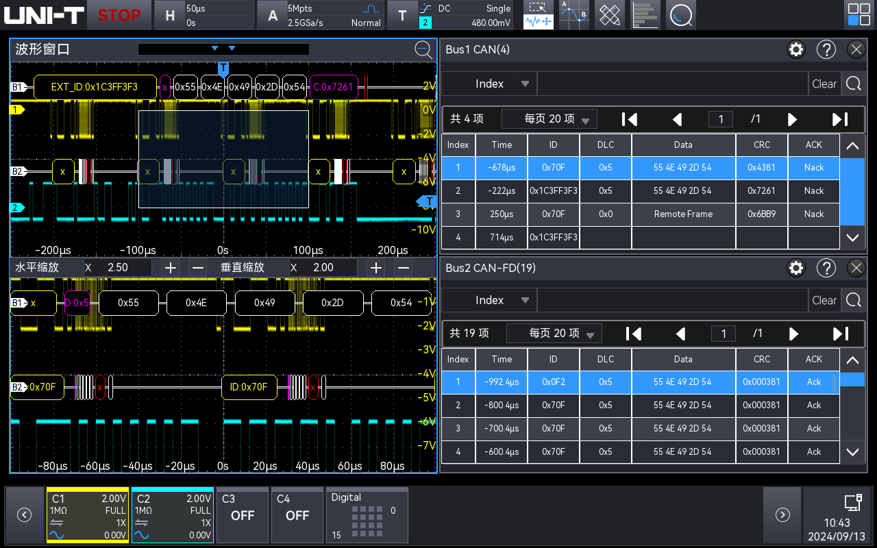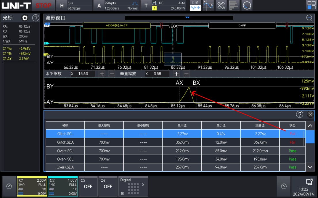 精准护航信号传输:IIC、SPI、CAN 可在数据总线间提供精确的时序测量,帮助迅速定位脉冲宽度、电压幅度不足、边沿抖动、建立与保持时间偏差及信号回勾等问题
