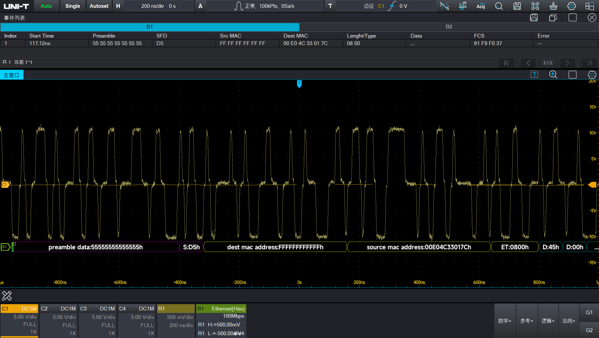 - 嵌入式:RS-232/422/485/UART、SPI、I2C、SMBUS、SPMI、AudioBus(I2S,LJ,RJ,TDM) - 汽车:CAN、CAN-FD、SENT、FlexRay、LIN、I3C、PSI5 - 计算机&通信: USB2.0、PCle2.0、Ethernet、NRZ、Manchester、8b/10b - 航空航天:MIL-STD-1553、ARINC429 - 支持包参数触发、协议包视图、事件列表、协议搜索 、协议分析报告