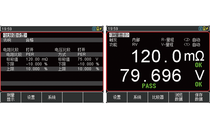 电阻测试范围: 0.001mΩ~30.00Ω ; 电压测试范围: 0.0001V~100.000V; R-量程:3mΩ,30mΩ,300mΩ,3Ω,30Ω,自动; V-量程:10V,100V,自动;