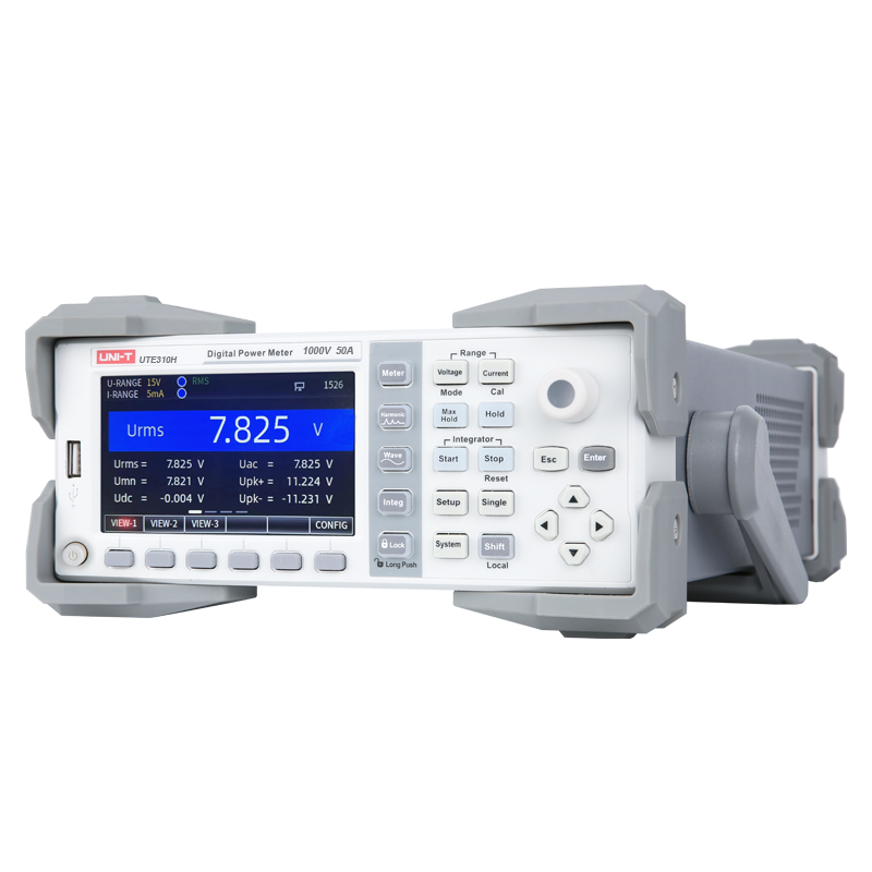UTE300系列数字功率计,集电压、电流、功率、功率因数、频率等诸多功能为一体。UTE300具有 0.1%的功率测量精度,1MSa/s的采样率,100ms最快数据更新速度,电流测量范围 50μA~50A 可满足用户从小电流大电流的测量需求;同时具备 USB、RS-232、LAN、GPIB(选配)等接口满足用户不同的测试通信需求。