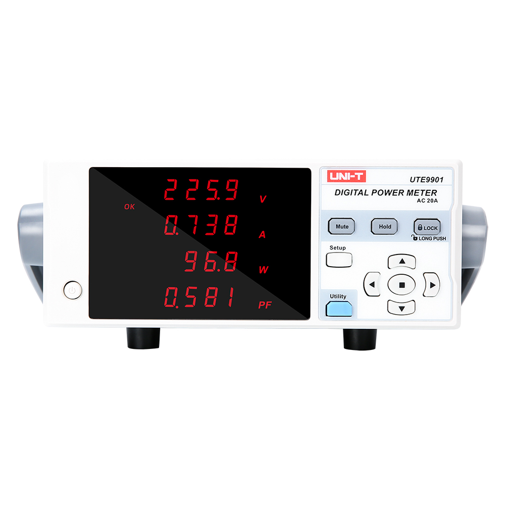 UTE9800/UTE9901智能电参数测量仪(又名数字功率计),是一款经济便携型测量仪,自动量程切换,拥有基频45Hz到65Hz,带宽5kHz,集电压、电流、功率、功率因素为一体的多功能测量仪。