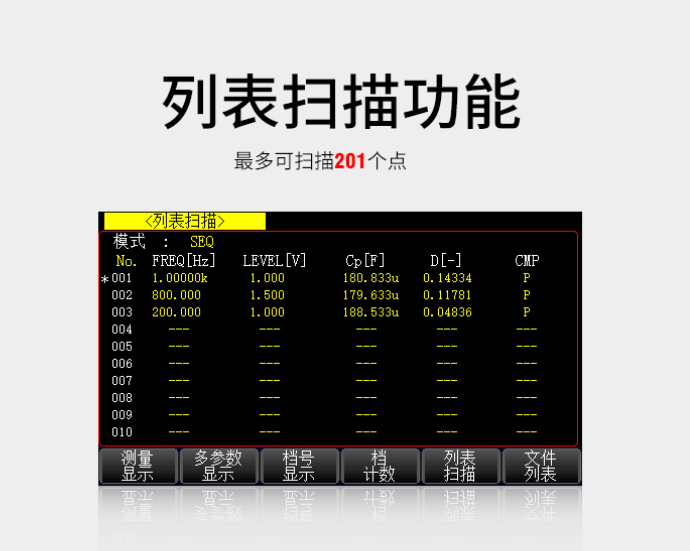 比较器功能:多10档分选,可通过Handler自动分选 档计数功能:与档位上下限对比分选,显示各档位计数值