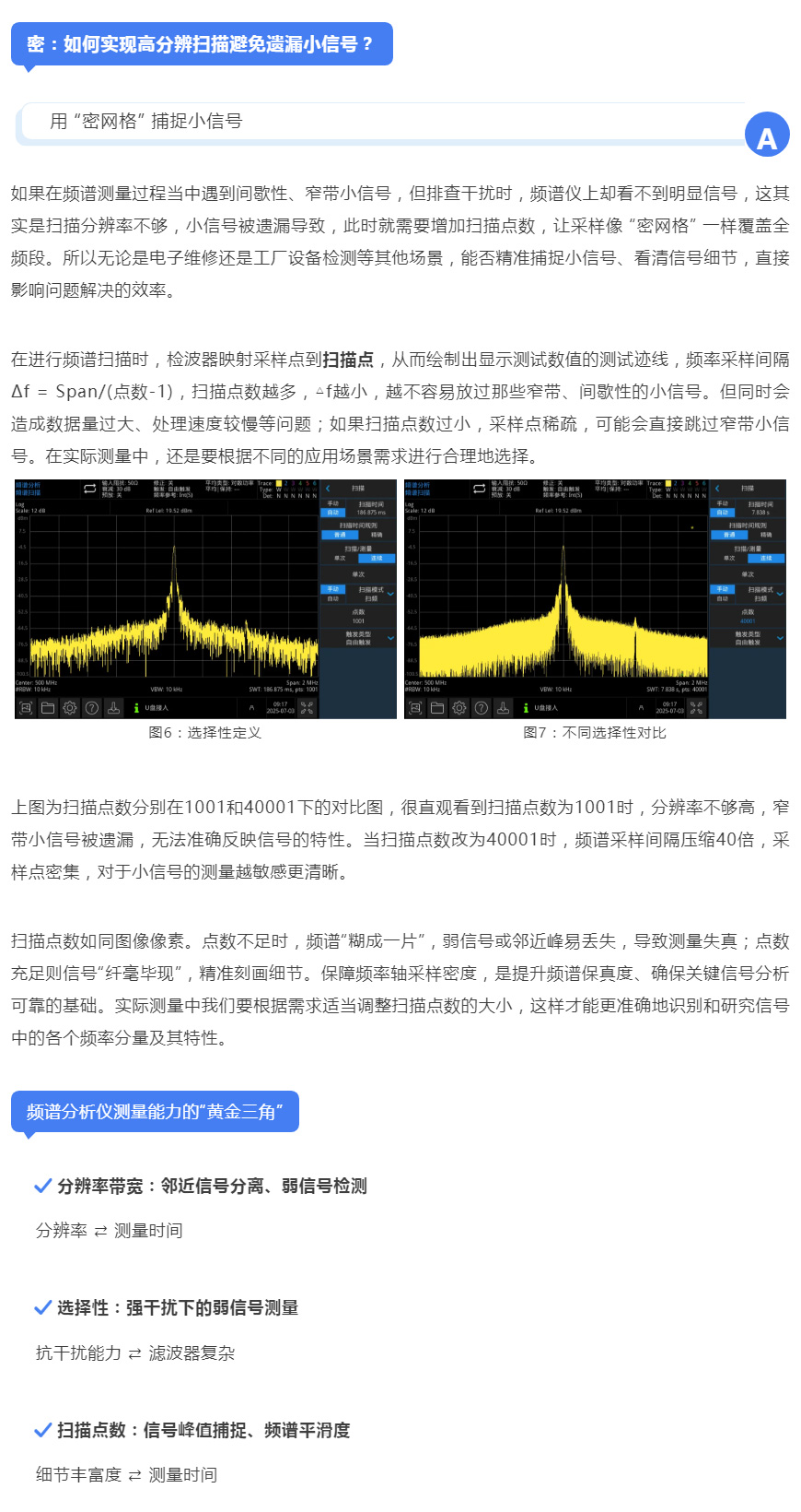 驱动频谱精准测量的关键“窄·锐·密”