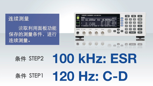 在电容的测量条件中希望以120Hz测量C-D。希望以100kHz测量ESR。这时,使用1台告诉连续测量不同条件。