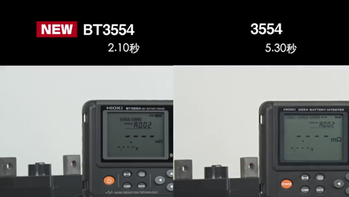 仅需将测试线接触端口即可轻松保存数据。无需开关操作,在测量值稳定后即可自动仅需保存(自动保持功能、自动存储功能)。 测试线接触端口后到通过自动存储进行保存的最快速度为2秒,和旧机型3554相比,缩短了60%。